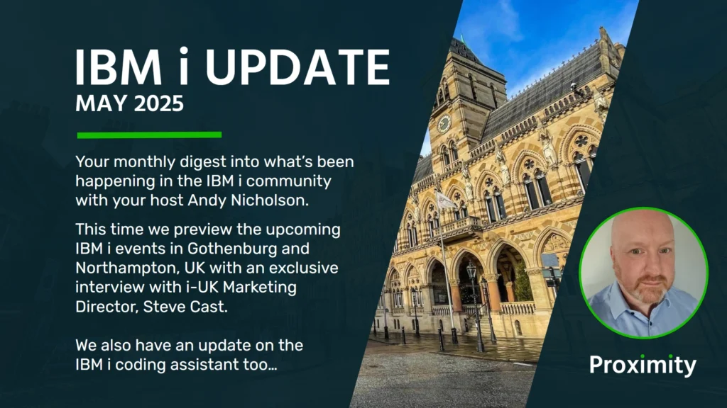 Welcome to your IBM i update for May 2025 – a snapshot of news and views on what’s been happening in the IBM i community in the past few weeks as reported by Proximity.
